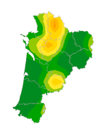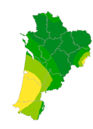 | Aquitaine | 4 [0 ; 10] | 149 [0 ; 379] |