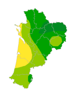 | Aquitaine | 71 [45 ; 96] | 2558 [1624 ; 3492] |