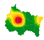 | Grand Est | 9 [2 ; 16] | 497 [104 ; 890] |