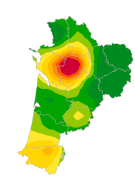 En Nouvelle-Aquitaine, la semaine dernière, le taux d'incidence des cas de diarrhée aiguë vus en consultations de médecine générale a été estimé à 65 cas pour 100 000 habitants IC 95% [48 ; 82].