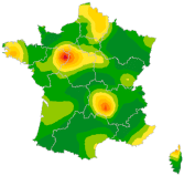 | Provence-Alpes-Côte d'Azur | 10 [3 ; 17] | 518 [136 ; 900] |
