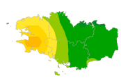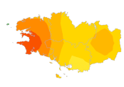 | Bretagne | 16 [5 ; 26] | 561 [185 ; 937] |