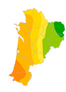 | Aquitaine | 10 [2 ; 18] | 365 [73 ; 657] |