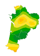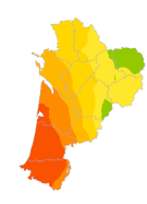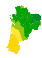| Aquitaine | 12 [2 ; 22] | 429 [78 ; 780] |