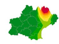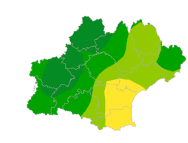 En Occitanie, la semaine dernière, le taux d'incidence des cas de diarrhée aiguë vus en consultations de médecine générale a été estimé à 49 cas pour 100 000 habitants IC 95% [34 ; 65].